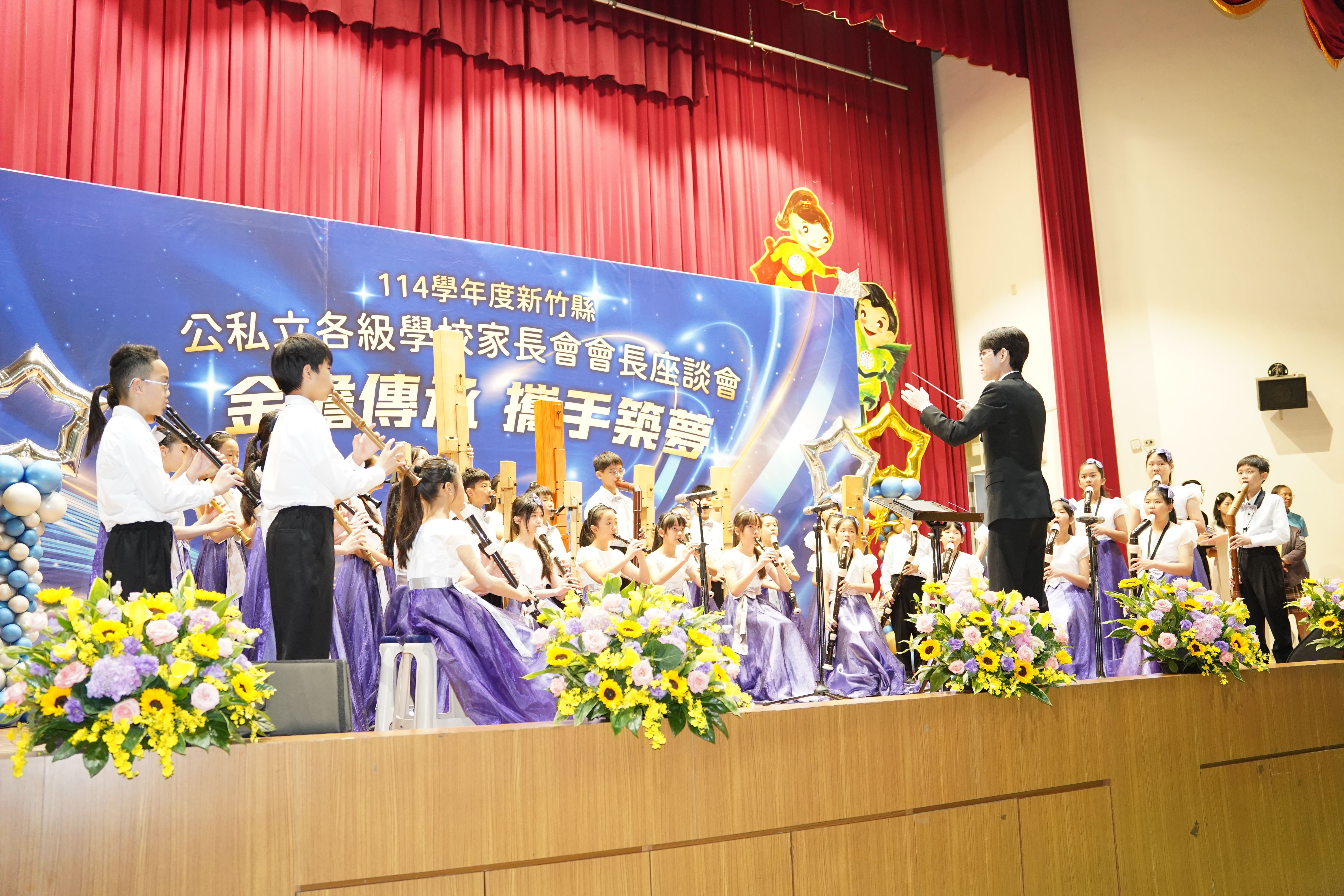 典禮開始,由獲得今年第十一屆新加坡萊佛士國際青少藝術節比賽弦樂合奏組最高榮譽金獎的興隆國小弦樂團帶來動人演奏,為活動拉開序幕。緊接著由獲得2025捷克布拉格國際音樂節金質獎、以及國內外各項音樂賽事,連續榮獲特優、第一名 金質獎的興隆國小直笛團以悠揚、精彩的直笛合奏旋律點亮授證儀式現場。